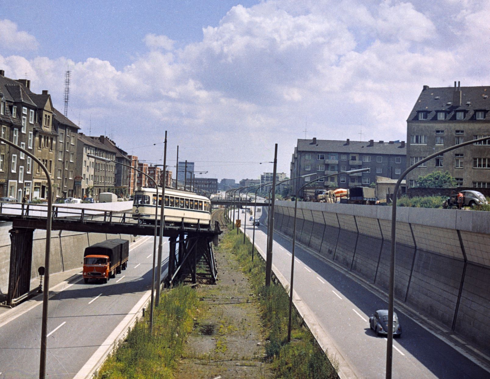 Foto: 1960 civarında Mülheim ve Essen arasında yapım aşamasındaolan otoyol; Telif hakkı: LVR Industrial Museum
