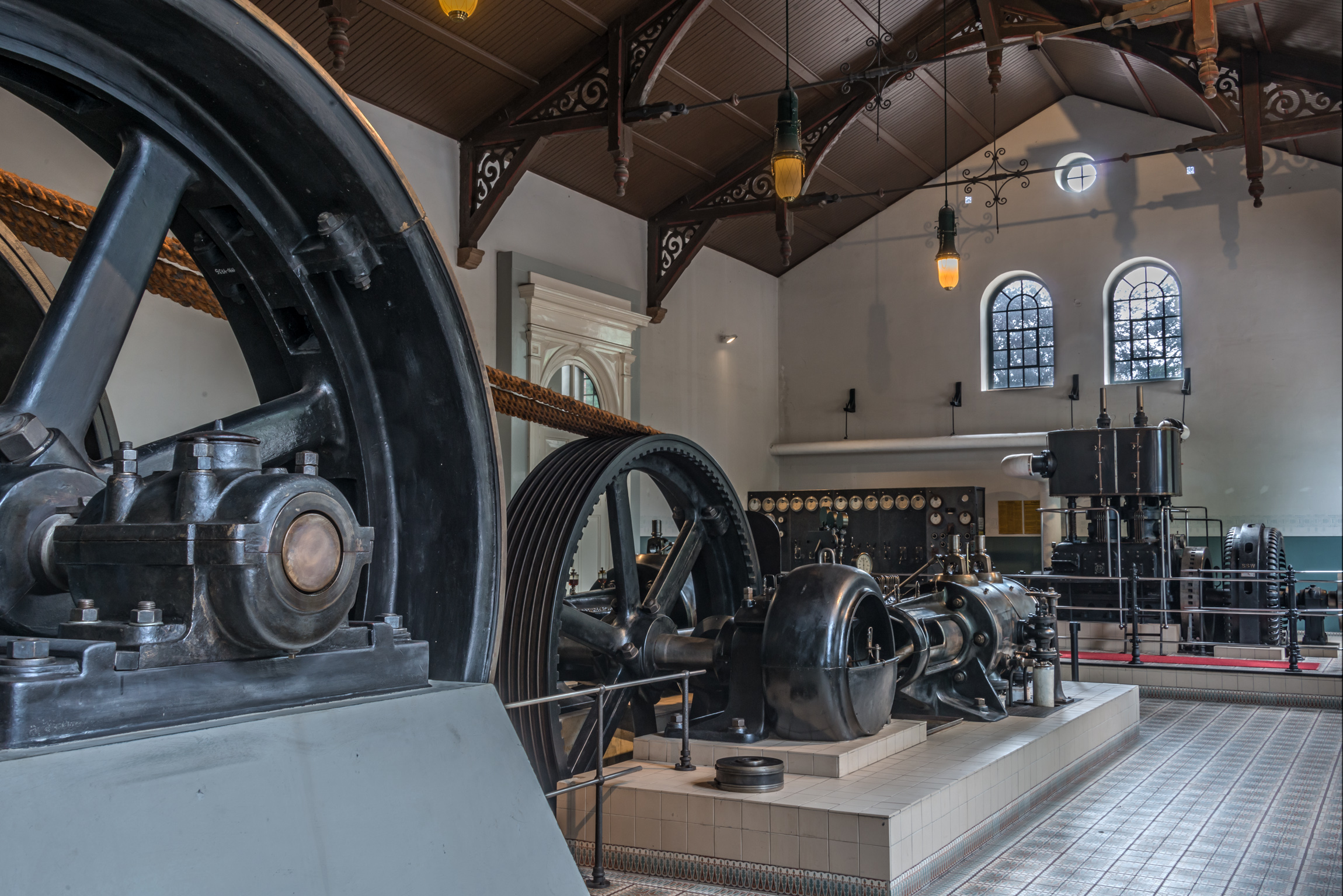 Dokuma fabrikasının merkezi : 1917'den büyük iki silindirlibuhar motoru (Fotoğraf: LWL / Holtappels)